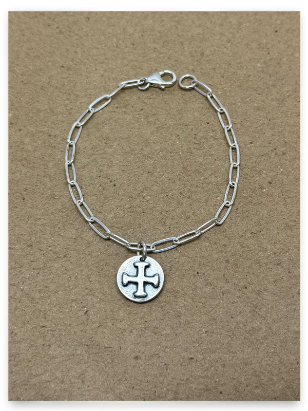 Its lightweight yet refined paper clip links are perfect for showcasing your favorite charms, making it an ideal foundation to wear and share your story of faith. Whether worn solo or layered, this bracelet is a graceful reminder to walk confidently in God’s strength every day.