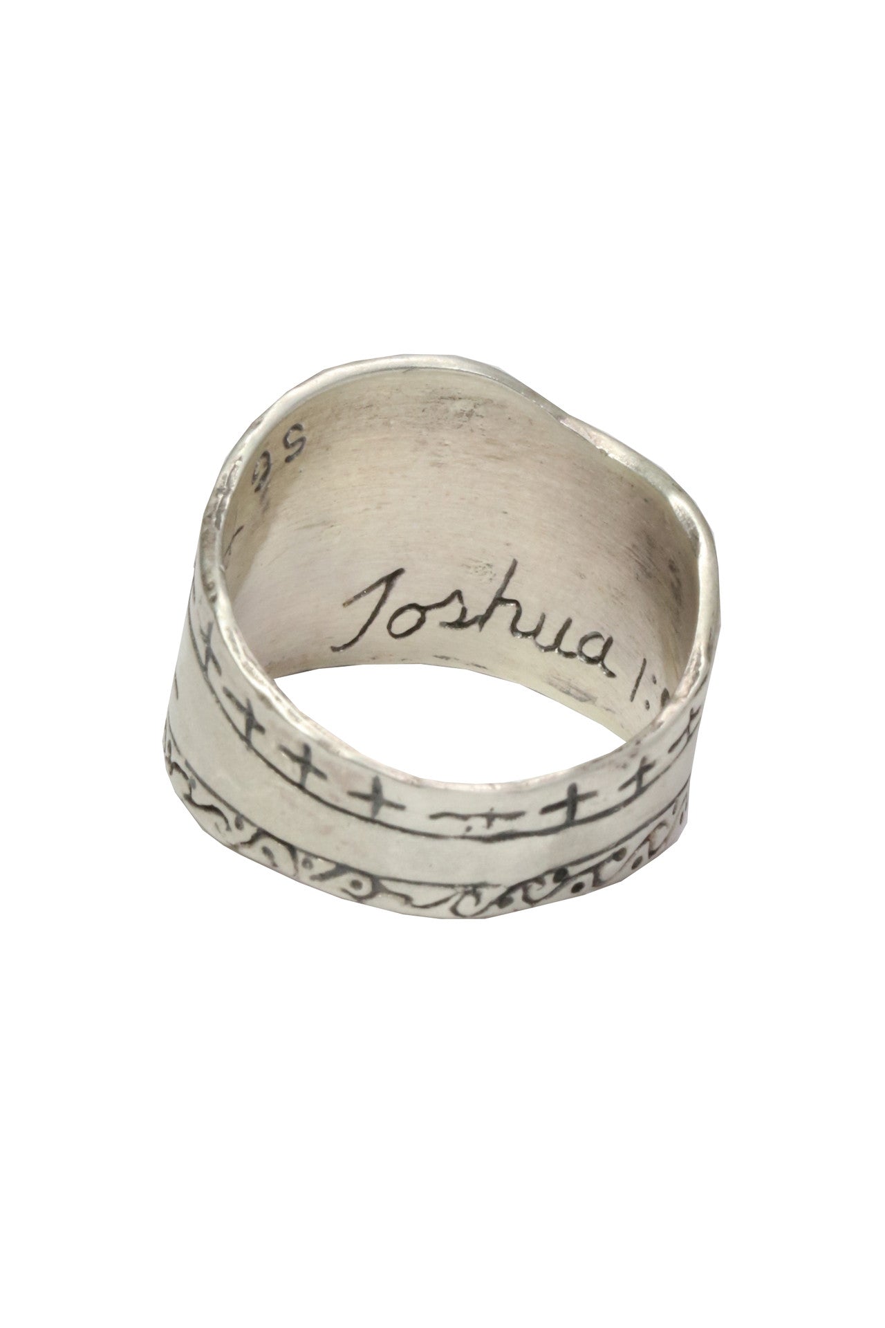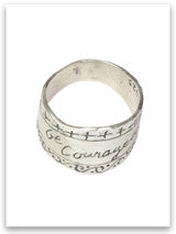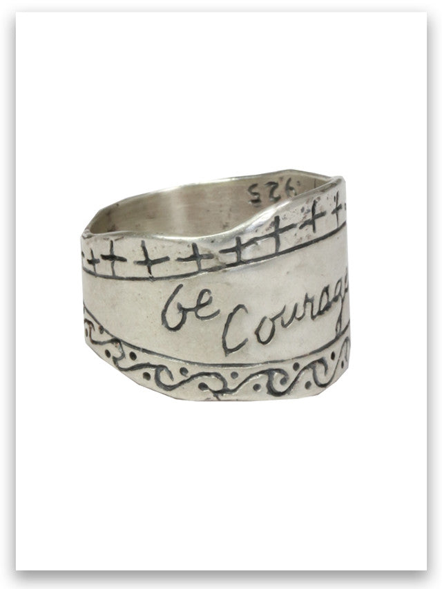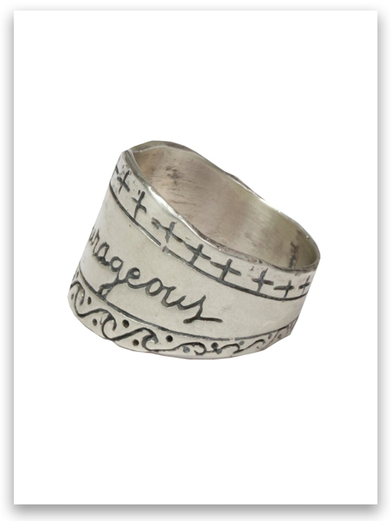 A sterling silver ring with the inscription 'BE COURAGEOUS' engraved on it. Joshua 1:9 Jewelry