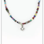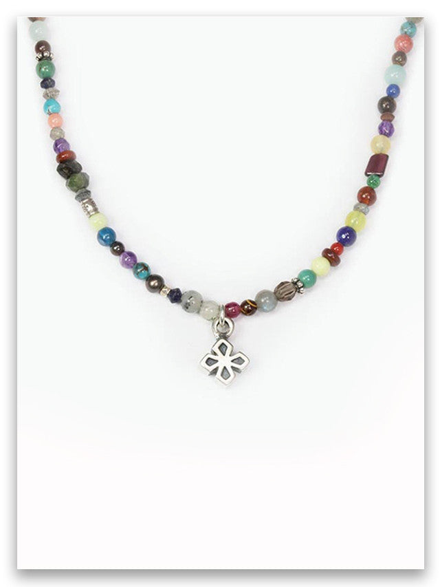 Crafted by hand in Texas, the Stones Cry Out Wrap Necklace is a powerful and colorful expression of praise. This unique necklace is made from an exquisite blend of sterling silver, turquoise, pipestone, apatite, tiger’s eye, jade, blue iolite, amethyst, citrine, agate, jasper, topaz, labradorite, chrysoprase, lapis, garnet, coral, and a variety of other precious and semi-precious stones.