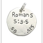 Carry a daily reminder of hope with our Choose Joy charm, thoughtfully inspired by Romans 5:3-5. Crafted in radiant sterling silver, this meaningful piece speaks to the heart of perseverance and unwavering faith.