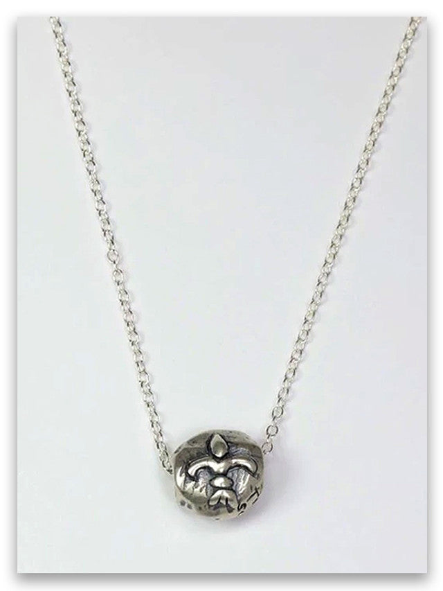 This dainty choker features a sterling silver Fleur-de-Lis bead centered on a fine sterling silver cable chain. The Fleur-de-Lis, long associated with royalty, serves as a beautiful reminder that you are a daughter of the King of Kings.