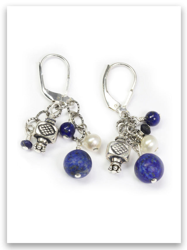 Lapis Pearl Cluster Earring