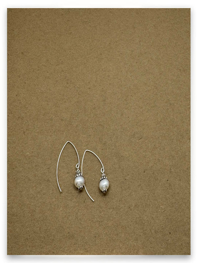 Sleek and sophisticated, these sterling silver marquise-shaped wire earrings showcase lustrous freshwater pearls that sway with every movement. The elongated silhouette flatters the face, while the classic pearl adds a touch of timeless elegance. Lightweight and versatile, they’re perfect for elevating both casual and dressy looks.
