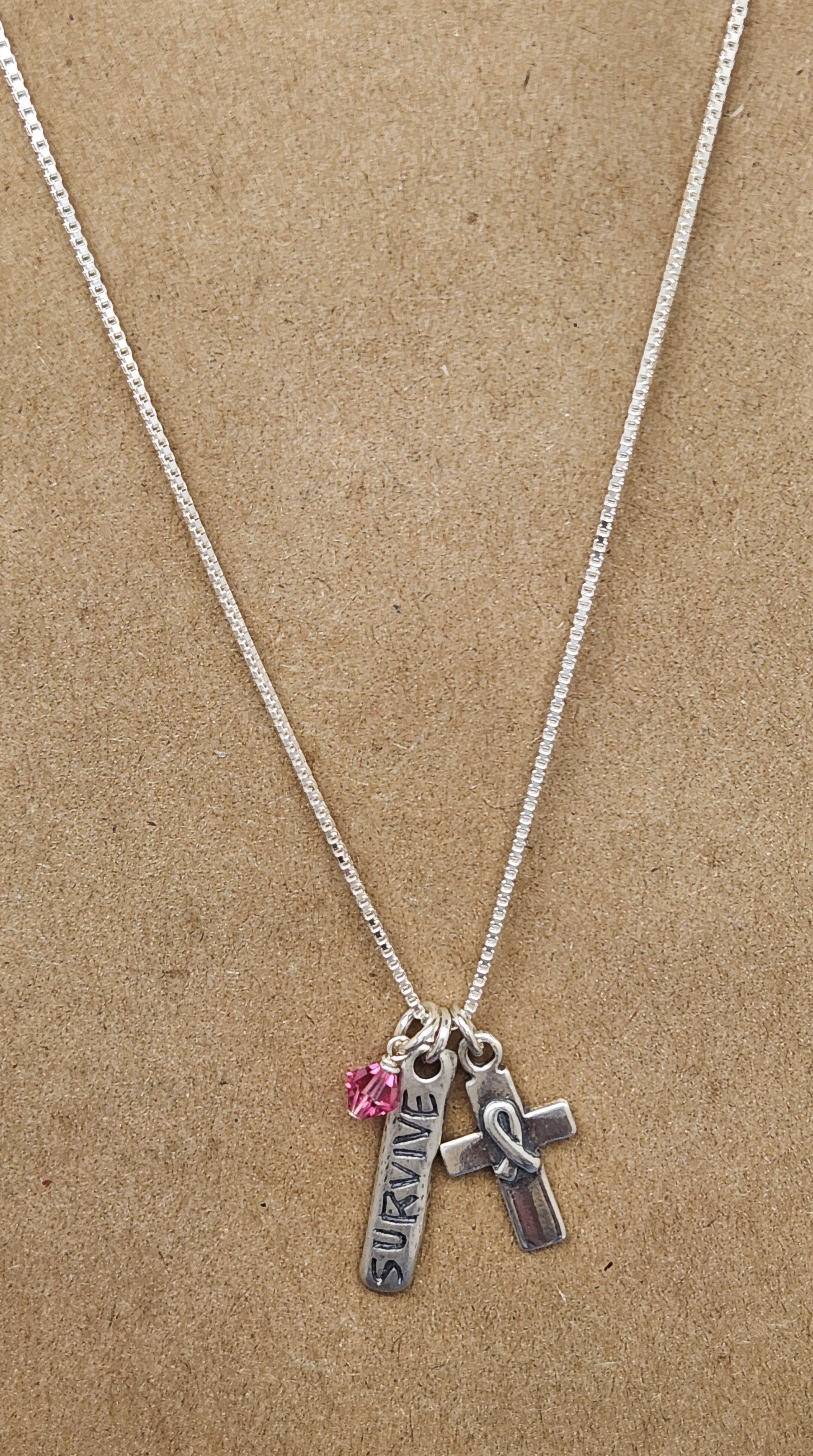Crafted with meaning and strength, the Cross of Hope Survivor Necklace is a beautiful symbol of faith and perseverance. Set on a sleek box chain, it features both the Cross of Hope charm and a Survivor charm—two reminders that our hope is secure in Christ and that victory is possible through Him. Wear it as a personal testimony of survival or gift it as encouragement to someone who continues to press forward with courage and faith.