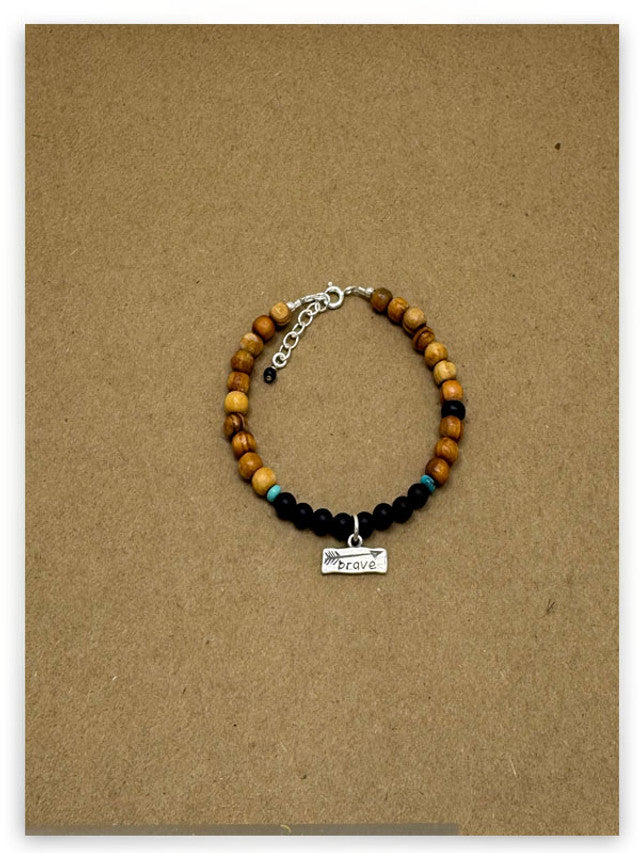 Brave Olive Wood Onyx & Turquoise Bracelet