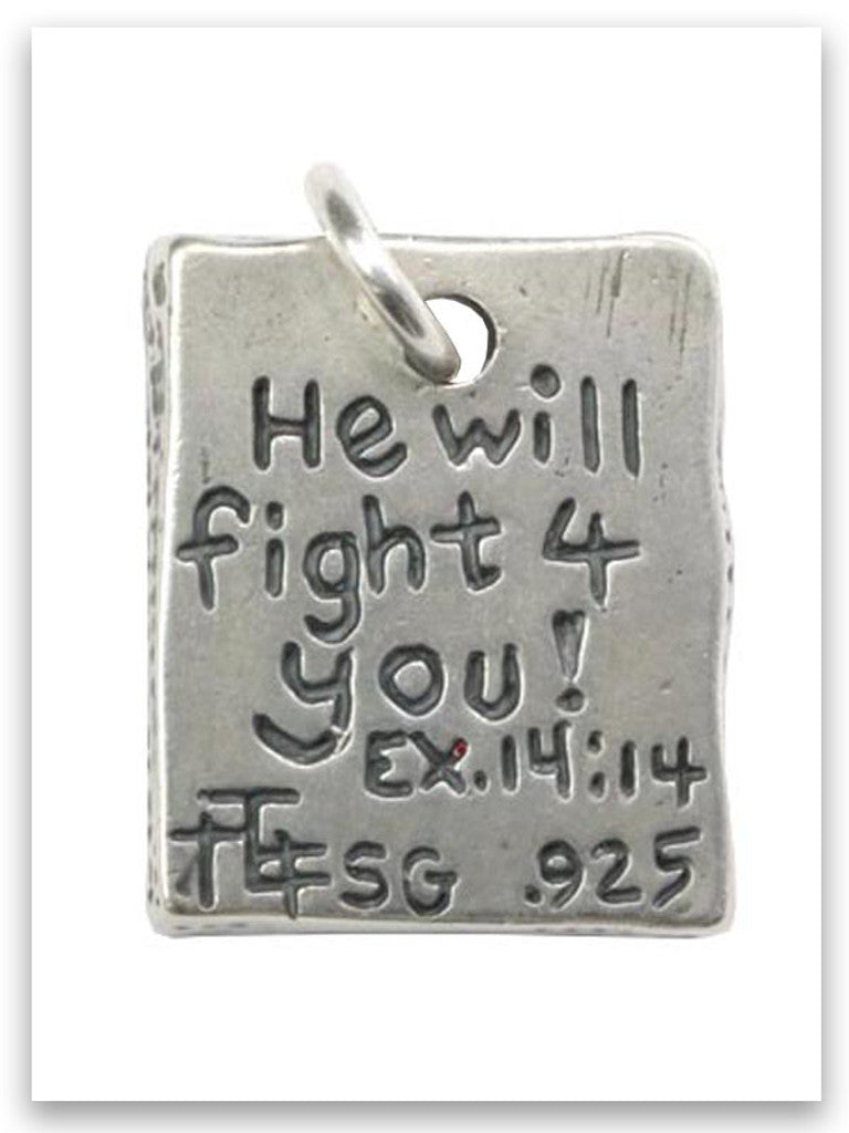 From our iTAG Collection — where iTAG stands for “I Talk About God” — the Shut-Up Charm is inspired by Exodus 14:14: “The Lord will fight for you; you need only to be still.”