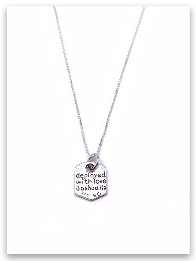 The back of the charm is engraved with “Deployed with Love” to keep a little piece of your hero close to your heart while they’re away.