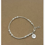 Graceful and understated, this timeless design features three sleek sterling silver curved bars accented with lustrous freshwater pearls and hand-hammered sterling silver nuggets in between. Finished with our signature Be Still charm, inspired by Psalm 46:10, it’s a meaningful reminder to pause, breathe, and find peace. A true classic that effortlessly transitions from everyday wear to special occasions.