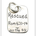 This Rescued Pendant is a beautiful symbol of freedom and grace. Inspired by Romans 6:14, “For sin shall no longer be your master, because you are not under the law, but under grace,” it reminds us that through Christ, we’ve been pulled from the grip of sin and set free by His unearned, unstoppable love.
