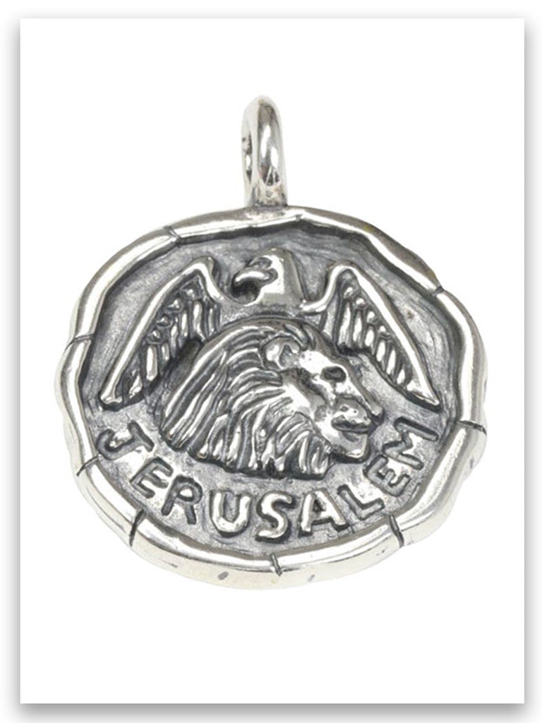 By name, nowhere in scripture is the USA mentioned. However, God saw fit to place USA in the middle of the name of His beloved city, Jerusalem. Jerusalem is also made up of nine letters: USA, plus three before it and three after it. The United States of America, blessed beyond her greatness and placed in the middle of Jerusalem. Call unto Him, listen for the answer and see something that has been hidden until now.  USA, are we mentioned in prophecy? One thing is sure, we are blessed and we must never turn our back on Israel. The American eagle looks in one direction and the lion, symbolic of Jerusalem, looks in the opposite, each keeping a watchful eye.  This powerful Jerusalem pendant is a symbol that you, as a American, stand with Israel.