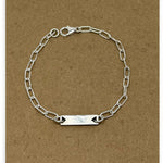 This engravable bar bracelet is the perfect way to add a personal touch to your jewelry collection. Whether you'd like to engrave a name, special date, meaningful word, or even a verse, this bracelet can be customized to reflect your unique story. The sleek, polished bar provides a clean canvas for your engraving, making it a perfect keepsake or gift. Finished with a trendy paperclip chain, this bracelet adds a modern flair to any outfit. Wear it alone for a simple, elegant look or layer it with other bracelets for a chic stacked style. Personalize it to make it truly yours!