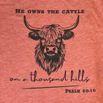 Bring a touch of whimsy and faith together with our Highland Cow Christian tee. Made from ultra-soft, cozy fabric, this shirt is perfect for everyday wear or layering for a casual look. Featuring the charming highland cow alongside the powerful reminder from Psalm 50:10—that God owns all the cattle on a thousand hills—it’s a joyful way to celebrate His provision and care. Wear it, share it, and let your faith shine in style!