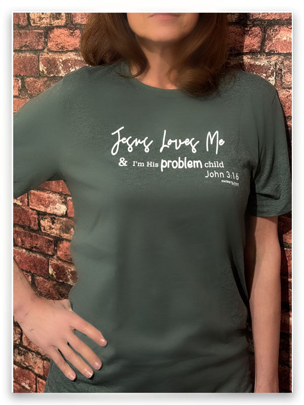 Show off your faith (and your sense of humor!) with our Jesus Loves Me, Even If I’m His Problem Child Christian tee. Made from super soft, comfy fabric, this shirt is perfect for everyday wear or casual outings. Inspired by John 3:16, it’s a joyful reminder that no matter our struggles or mistakes, God’s love is unconditional and everlasting. Wear it proudly and celebrate the boundless grace of Jesus!