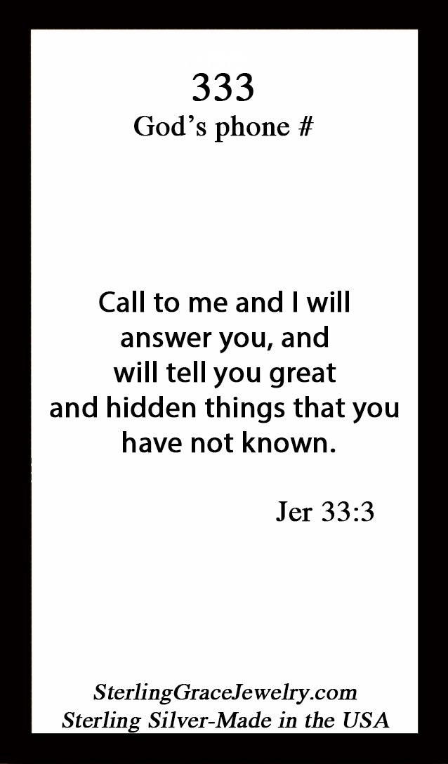 The 333 Charm is a tiny but bold reminder that God is always just a prayer away. Known by many as God’s phone number, Jeremiah 33:3 is an open invitation to call on Him — anytime, anywhere — and trust that He will answer.