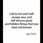 "Call to Me and I will answer you and tell you great and unsearchable things you do not know." — Jeremiah 33:3