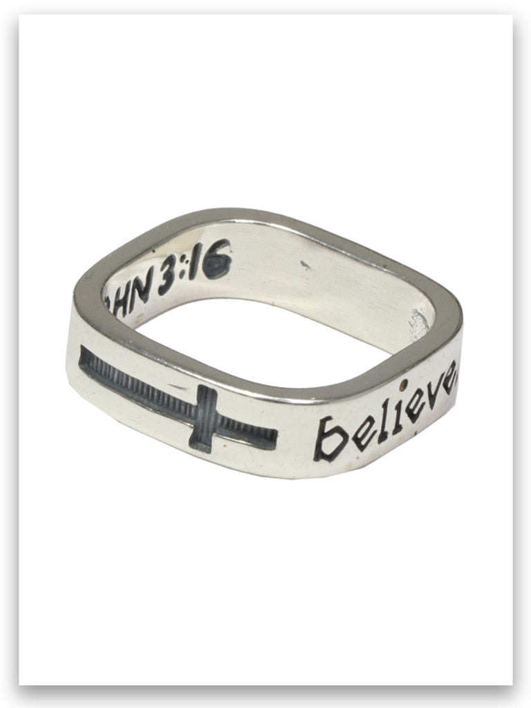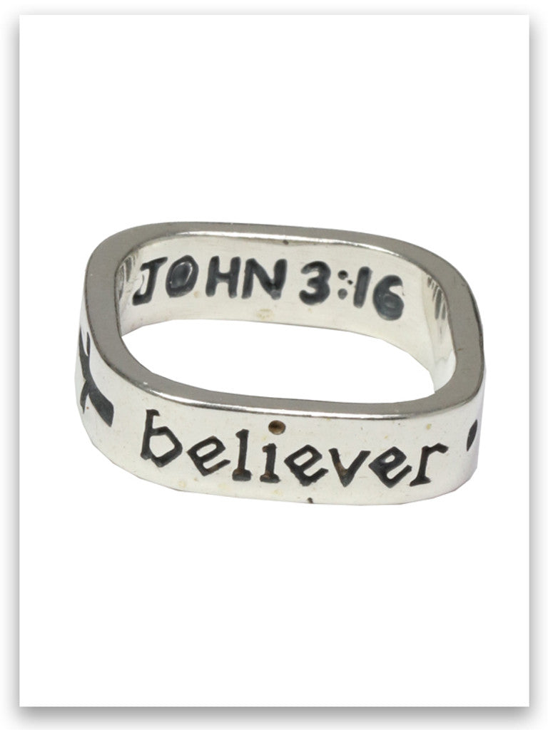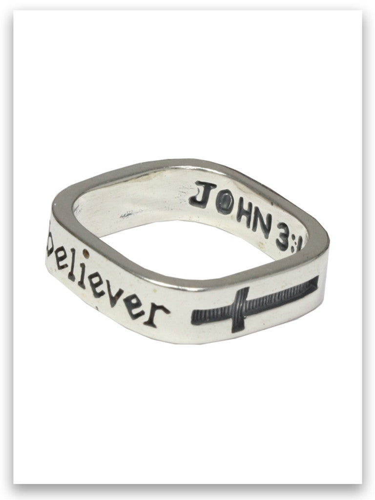 For the bold believer, this ring is more than jewelry — it’s a declaration. Inspired by the life-giving promise of John 3:16 — “For God so loved the world that He gave His one and only Son…” — the Believer Ring is crafted in solid sterling silver with a square, edgy design that makes a statement of unwavering faith.